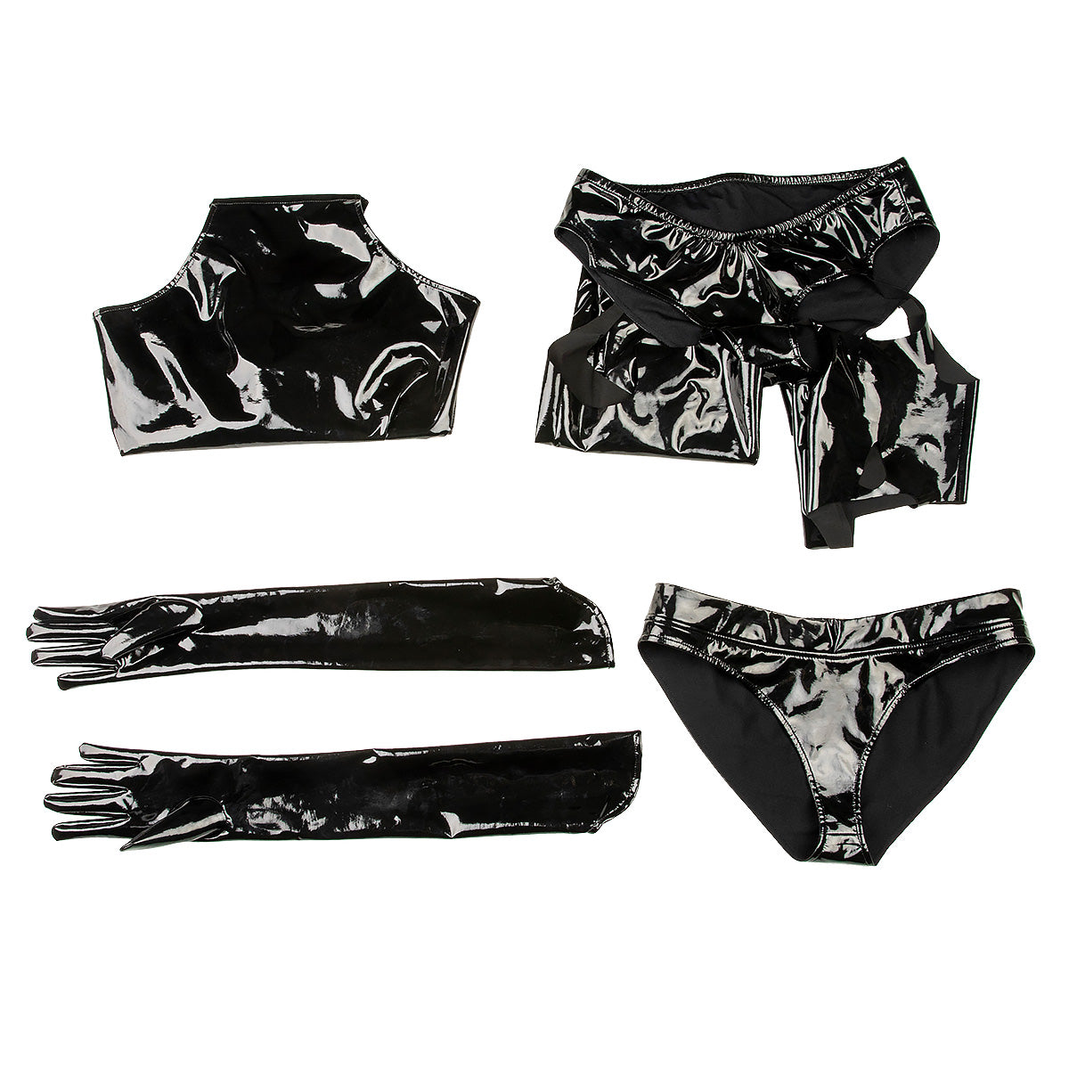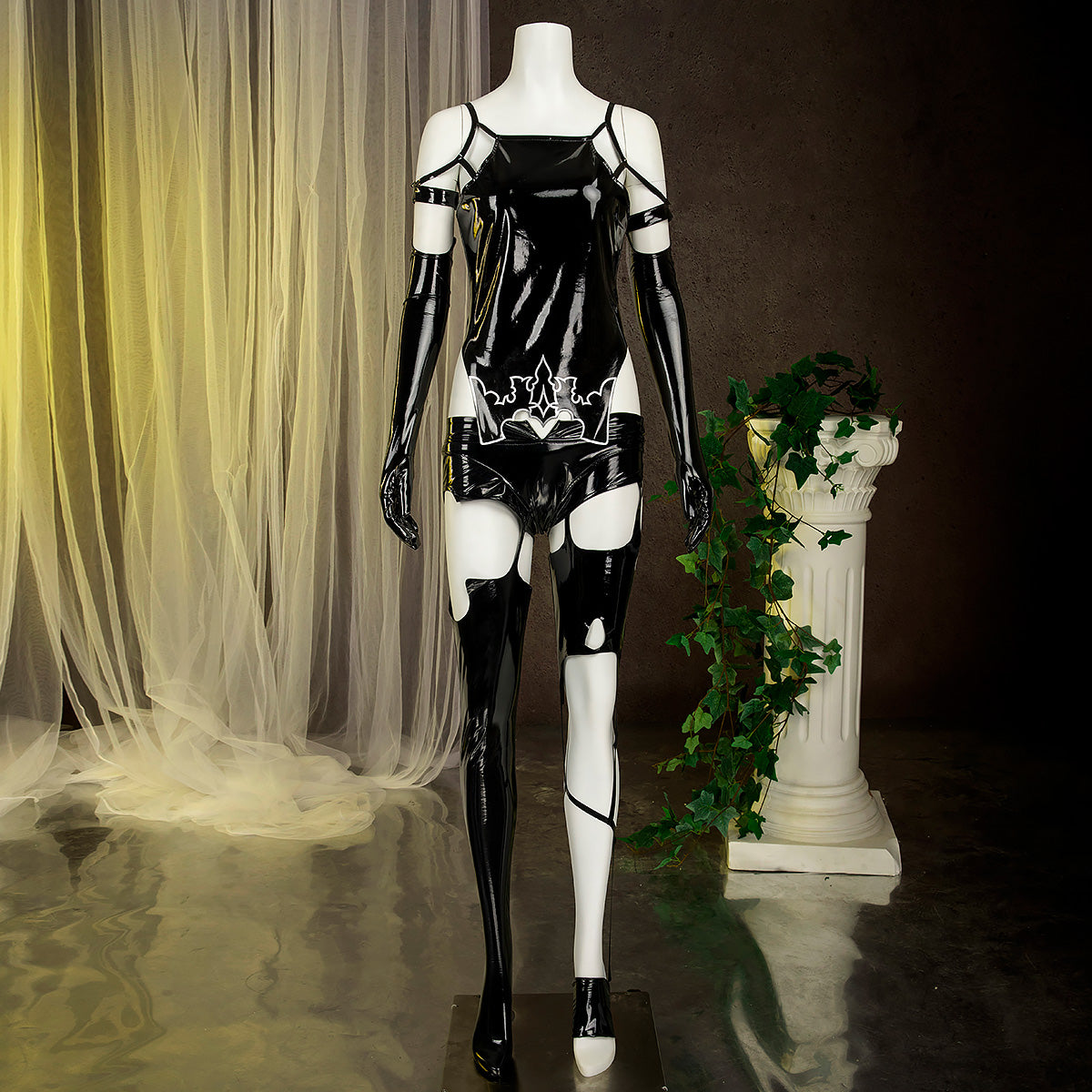 • Paket beinhaltet: Kleid, Handschuhe, Taillenschmuck, Strümpfe, Unterwäsche, Augenklappe