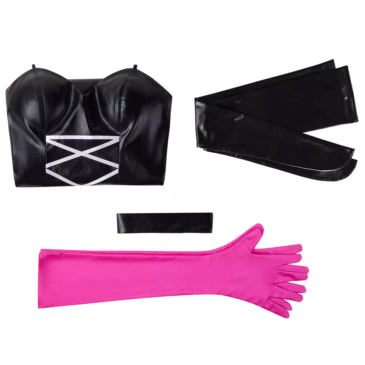 • Paket beinhaltet: Mantel, Oberteil, Handschuhe (ohne rote Teile), enge Hose, Halsband