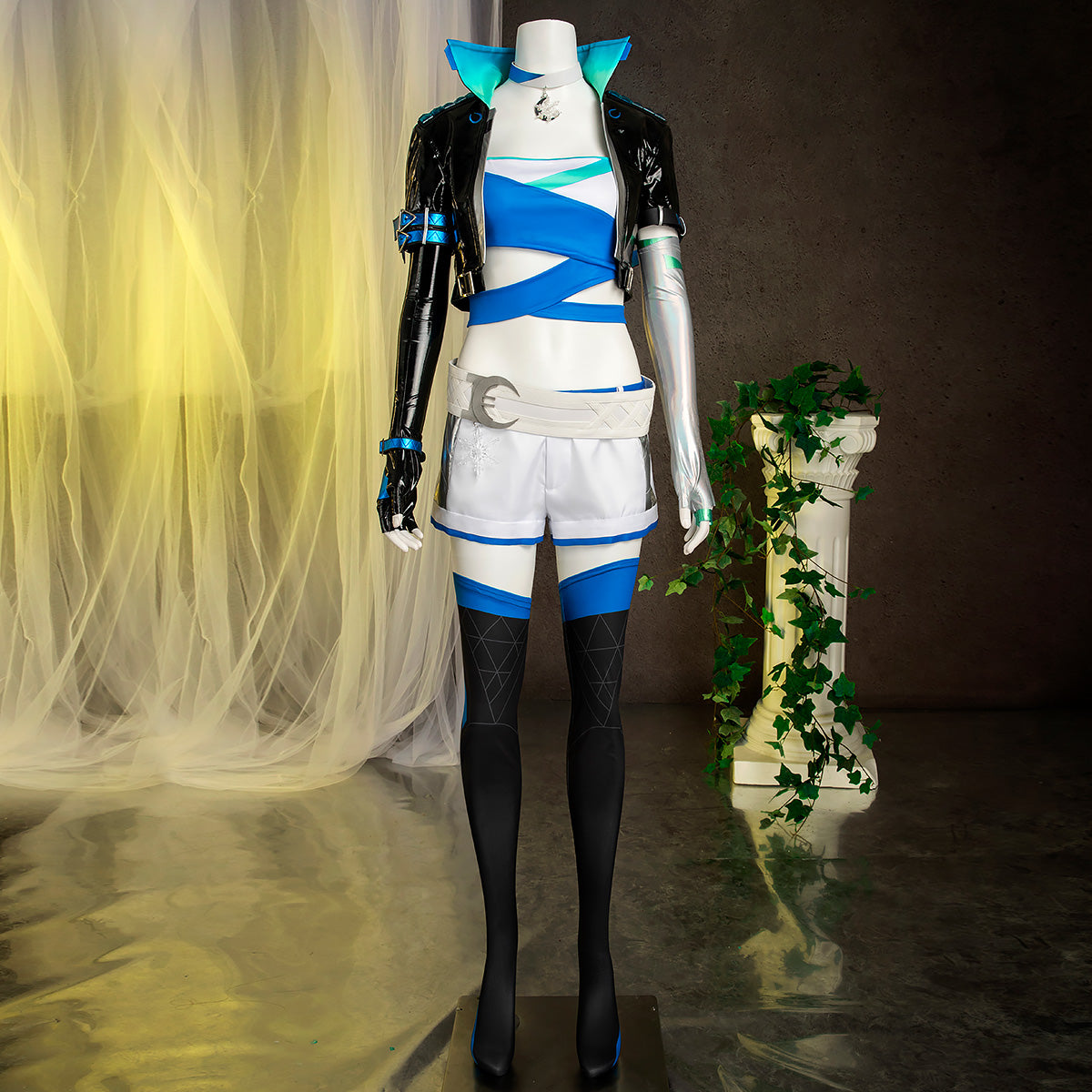 • Paket beinhaltet: Top, Rock, Armband, Beinriemen, Krawatte, Fliege, Handschuhe, Glockenfliege