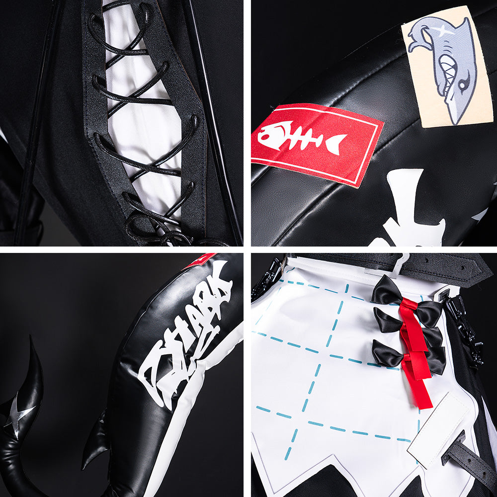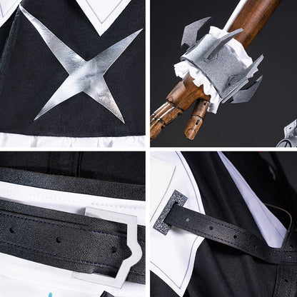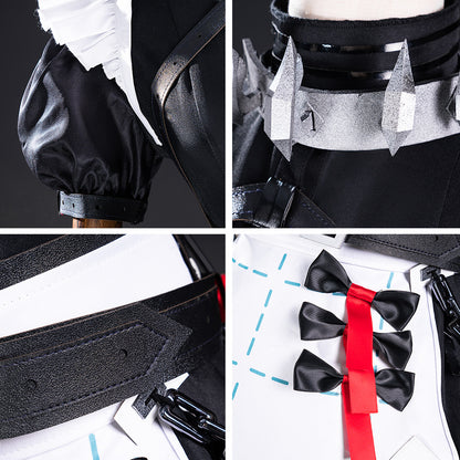 • Paket beinhaltet: Mantel, Oberteil, Handschuhe (ohne rote Teile), enge Hose, Halsband