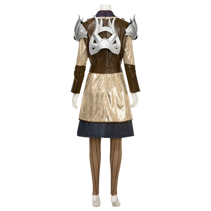 • Package Includes: Dress, Vest, Skirt, Tights pants, Hand guards, Breastplate, Pauldrons, Headwear